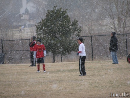 First game was a loss (6-4). First half was highlighted with heavy snow and wind.